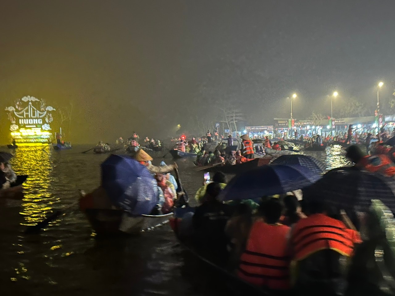 Từ sớm tinh mơ, khi trời còn chưa sáng rõ, mưa xuân lất phất bay, rất đông người dân và du khách đã có mặt tại bến Đục để hành hương về đất Phật chùa Hương, dự khai hội chùa Hương. Trước đó, con đường đến chùa Hương đã tắc nghẽn từ chiều tối hôm trước, minh chứng cho sức hút của lễ hội tâm linh truyền thống của Thủ đô.