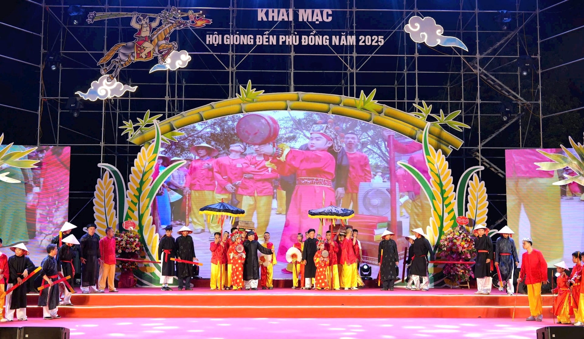 | Biểu diễn văn nghệ tại Lễ khai mạc Hội Gióng, đền Phù Đổng năm 2025. Ảnh: Nguyễn Sơn |