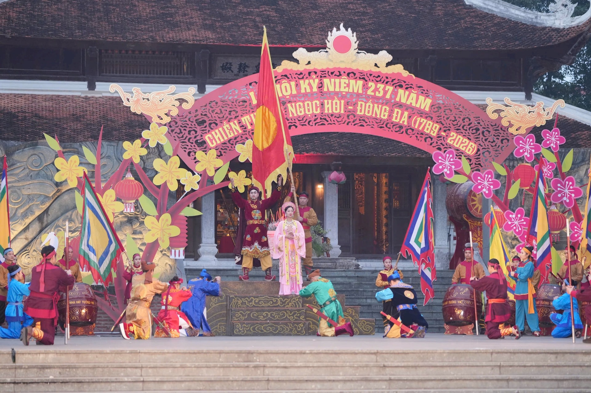 Lễ hội kỷ niệm 237 năm Chiến thắng Ngọc Hồi - Đống Đa sẽ chính thức khai mạc vào sáng mùng 5 Tết Bính Ngọ. Bên cạnh phần lễ trang nghiêm, du khách sẽ được hòa mình vào phần hội sôi nổi với các hoạt động múa lân rồng, hội thi cờ người và không gian Hội chợ Xuân rực rỡ.