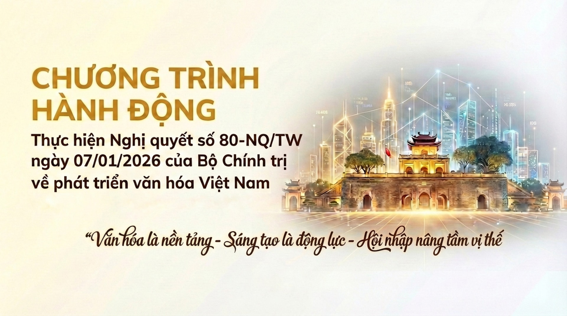 Chương trình hành động thực hiện Nghị quyết số 80-NQ/TW ngày 7-1-2026 của Bộ Chính trị được Thành ủy Hà Nội cụ thể hóa với tinh thần “Văn hóa là nền tảng - Sáng tạo là động lực - Hội nhập nâng tầm vị thế”.
