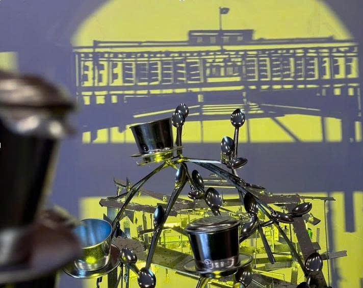 | Tác phẩm Ký ức của dòng sông - tái hiện cây cầu Long Biên nhân dịp kỉ niệm 70 năm giải phóng Thủ đô. Ảnh: NVCC |