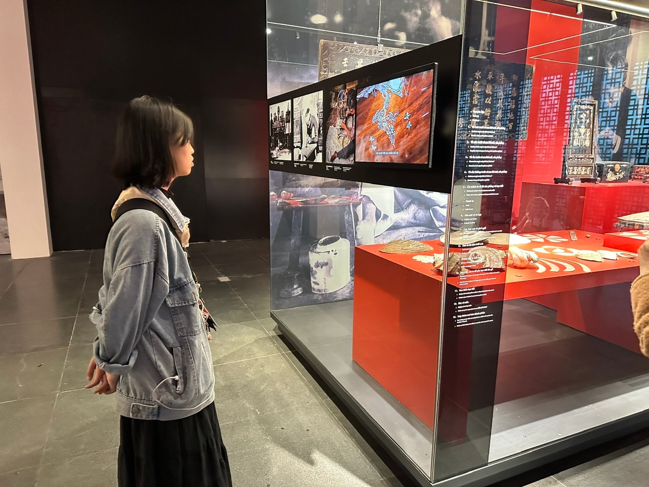 Về trải nghiệm tương tác, chạm vào di sản, điểm nhấn hiện đại nhất chính là hệ thống 24 màn hình tương tác được bố trí khoa học theo từng chủ đề và tiểu chủ đề. Đây không chỉ là nơi tra cứu thông tin, mà còn là cầu nối "ngôn ngữ hai chiều" giữa bảo tàng và khách tham quan. Thay vì chỉ nhìn hiện vật trong tủ kính, hay đọc chú thích cố định trên vách (die-back), du khách có thể chủ động khám phá tầng sâu của dữ liệu thông qua những cú chạm.