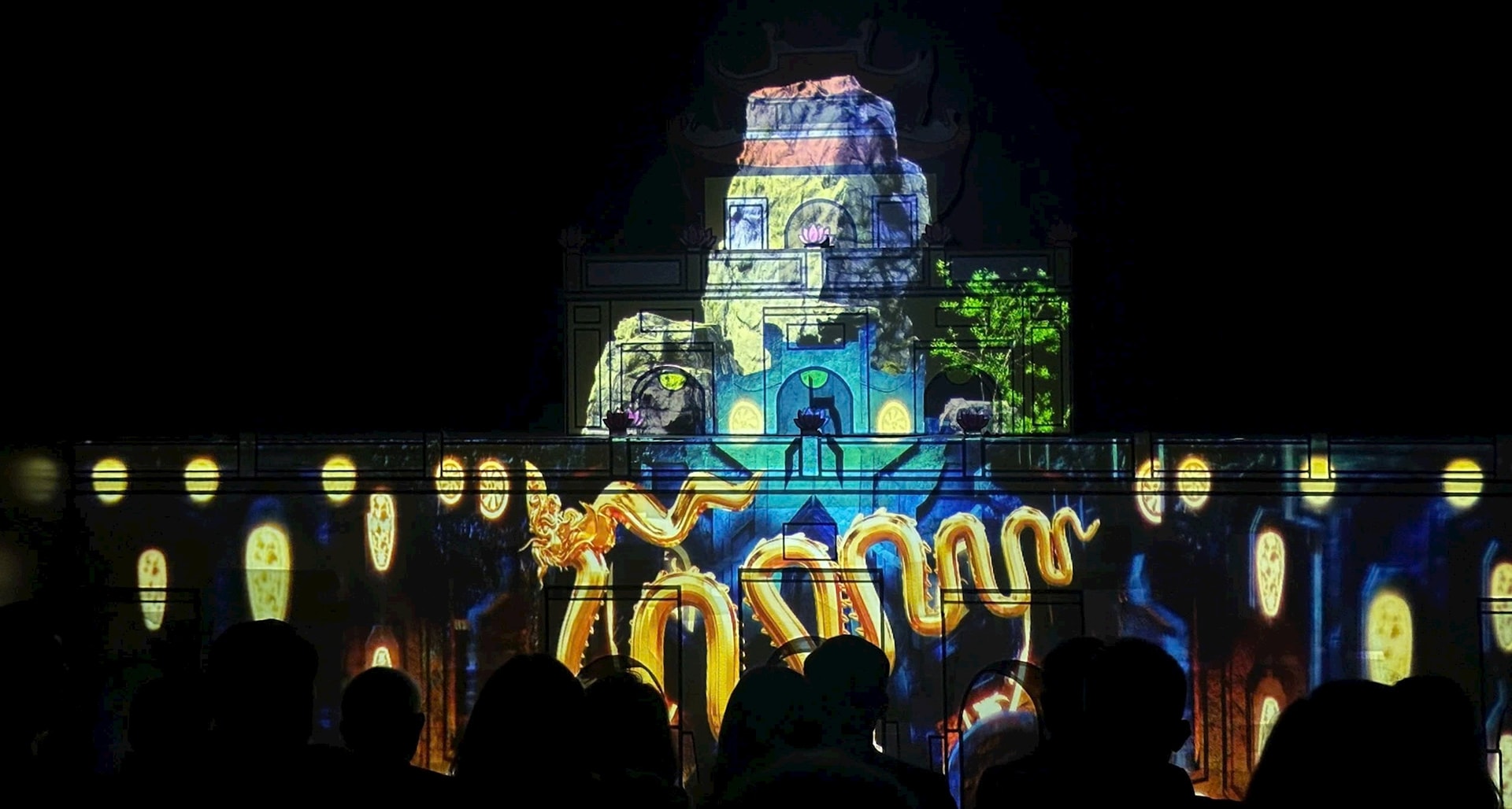 | Vở diễn “Kinh Đô Thăng Long” bằng công nghệ 3D Mapping kết hợp trải nghiệm không gian số tại Hoàng thành Thăng Long. Ảnh: H.T |