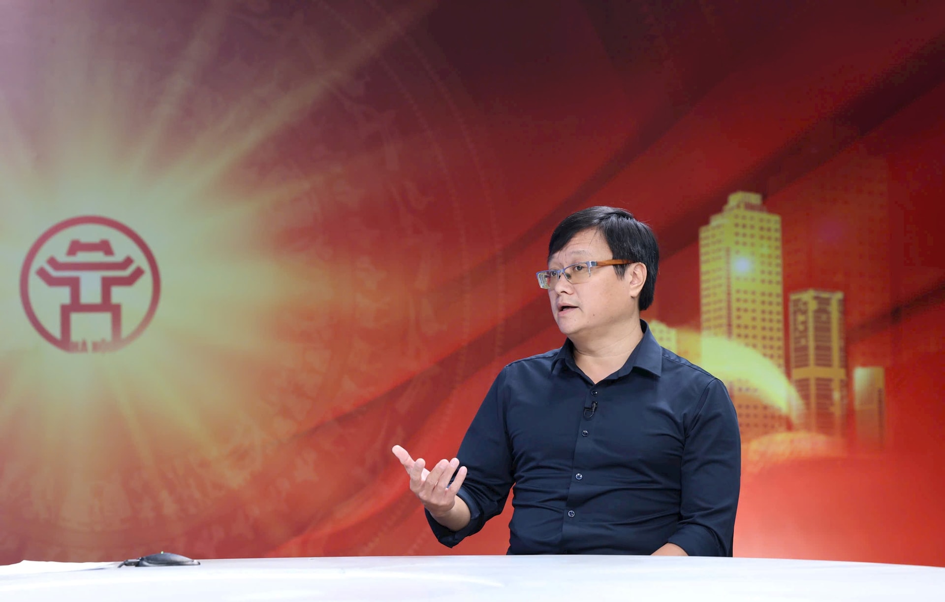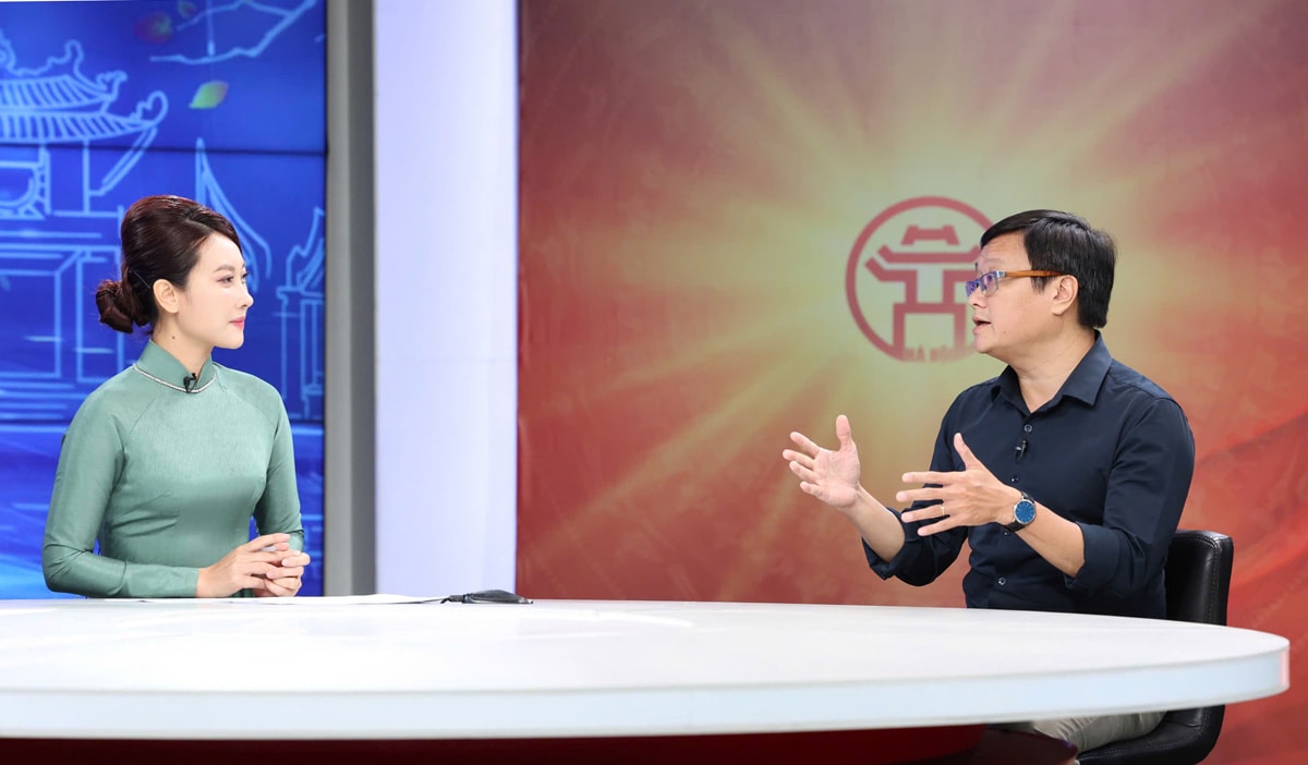 | Ông Đặng Minh Vệ, Phó Giám đốc Bảo tàng Hà Nội, trao đổi với phóng viên Cơ quan Báo và Phát thanh, truyền hình Hà Nội tại chương trình. |
