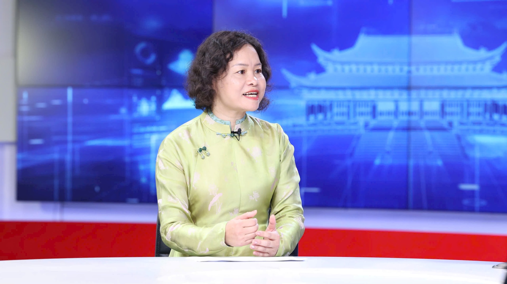 | Bà Phạm Thị Lan Anh, Trưởng phòng quản lý di sản (Sở Văn hóa thể thao Hà Nội) trao đổi tại Chương trình thời sự ngày 5-4. Ảnh Thanh Hải |