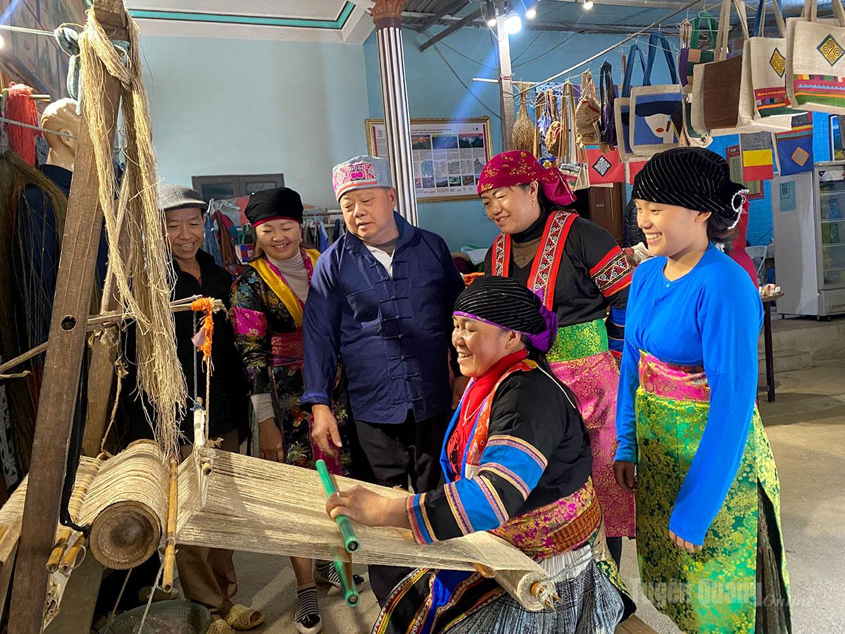 | Hợp tác xã dệt lanh Lùng Tám dệt thủ công trên khung cửi gỗ, giữ trọn tinh hoa nghề truyền thống. |