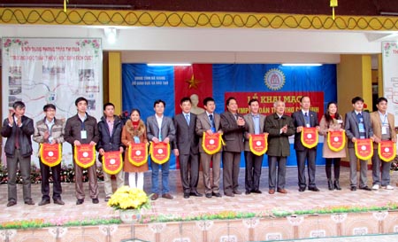 Đại diện các trường tham dự kỳ thì nhận Cờ lưu niệm của Sở GD -ĐT. |