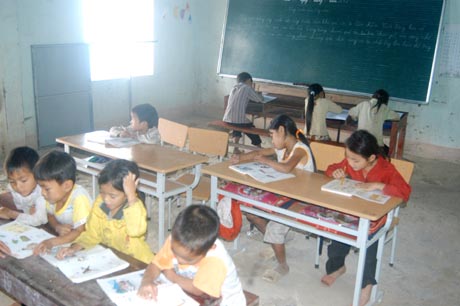 Còn rất nhiều lớp học phải học ghép tại các điểm vùng sâu, xa ở Xín Mần trong năm học này.