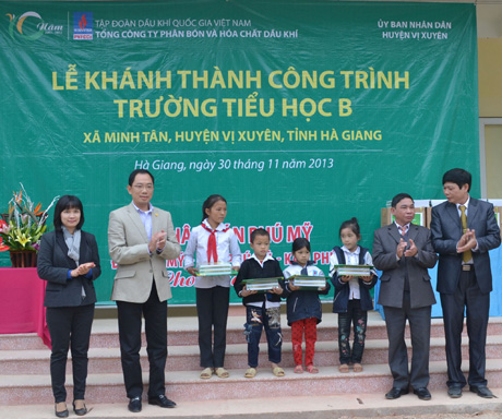 HGĐT- Ngày 30.11, Tổng Công ty Phân bón và Hóa chất dầu khí (PVFCCo), thuộc Tập đoàn Dầu khí Quốc gia Việt Nam phối hợp với chính quyền địa phương tổ chức Lễ khánh thành Trường Tiểu học B, xã Minh Tân (Vị Xuyên).