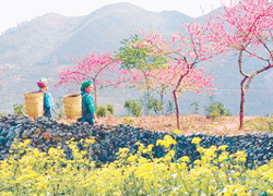 Với mầu sắc rực rỡ và thanh tao của nó, hoa đào hầu như không còn là sản phẩm thuần túy vật chất, nó đã chuyển tải trong đó các giá trị tinh thần, nói cách khác thì hoa đào còn chứa đựng trong nó một ý nghĩa văn hóa. Mấy năm nay ở Hà Nội, có một số người lại nảy sinh cái thú sắm "đào rừng" vào ngày Tết, bởi thế sau ngày "ông Táo lên trời" lại thấy có mấy chiếc ô-tô chất ngất những cành đào rừng nhằm hướng Hà Nội thẳng tiến. Oái oăm thay, ngược chiều với mấy chiếc xe này lại là những ô-tô có cành đào, cây đào xếp gói cẩn thận buộc trên nóc, hay buộc sau xe máy của bà con các tỉnh về quê và đem theo món quà quý giá của ngày Tết có xuất xứ từ Quảng Bá, Nhật Tân!