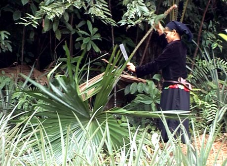 Lá cọ là nguyên liệu chính dùng để lợp nhà.