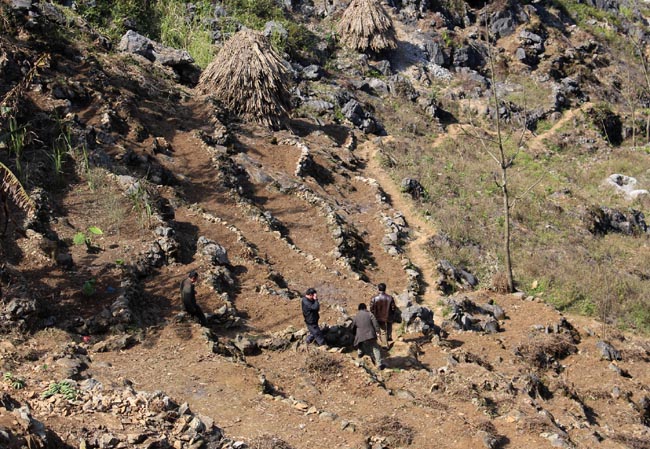 | Muốn vào đến thôn Séo Sả Lủng chỉ có đi bộ vượt qua các nương đá tai mèo... |