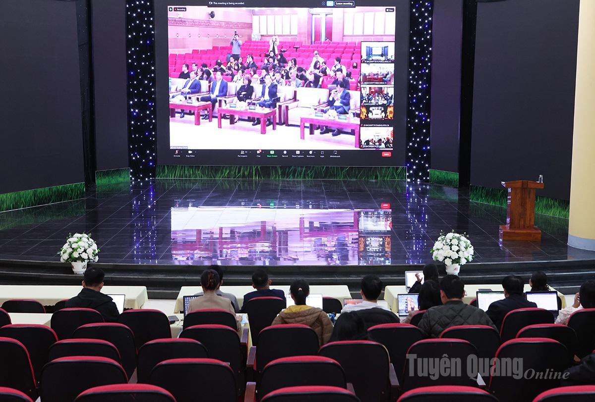 | Lãnh đạo, phóng viên, biên tập viên Báo và phát thanh, truyền hình Tuyên Quang tham dự lớp tập huấn tại điểm cầu trực tuyến trụ sở cơ quan. |