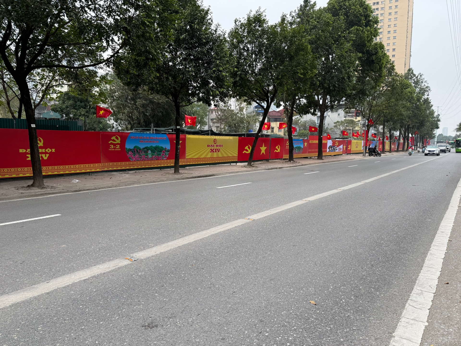 | Công tác tuyên truyền trên phố Tố Hữu thể hiện tinh thần Đại hội đại biểu toàn quốc lần thứ XIV của Đảng. Ảnh: MT |