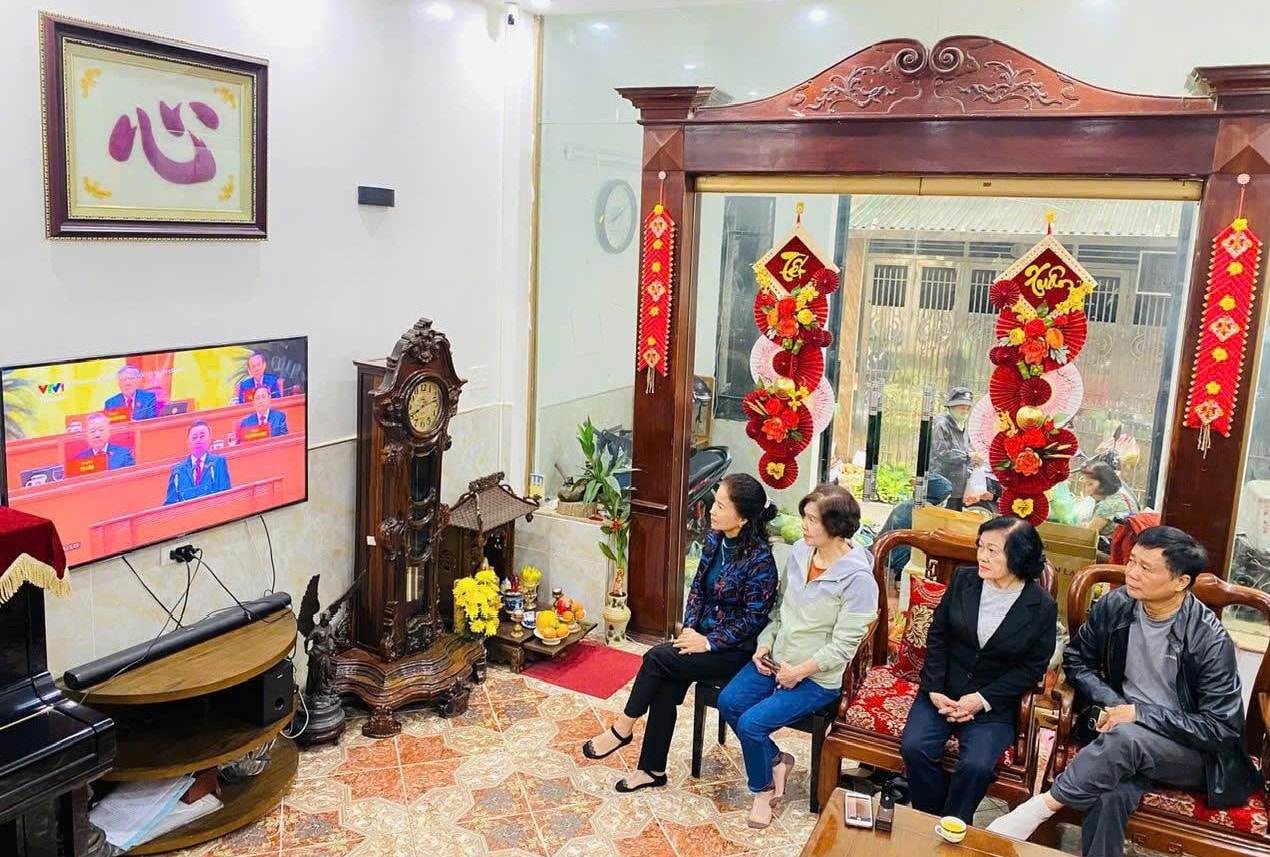 | Buổi truyền hình trực tiếp phiên khai mạc Đại hội đại biểu toàn quốc lần thứ XIV của Đảng thu hút sự quan tâm của đông đảo người dân phường Hai Bà Trưng. Ảnh: Đình Hiệp |