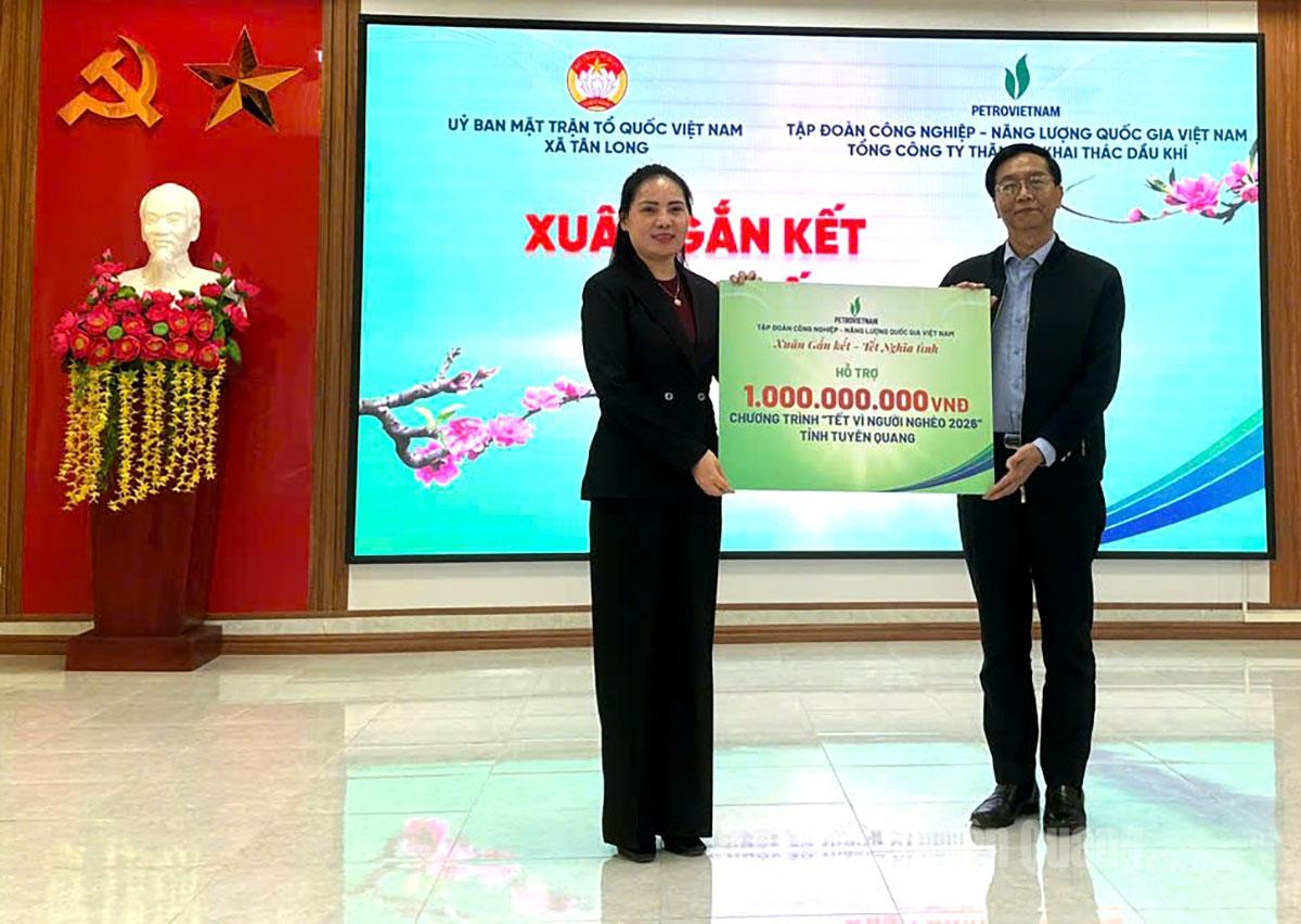 Cùng ngày, tại xã Tân Long, Ủy ban MTTQ Việt Nam tỉnh phối hợp với Tập đoàn Công nghiệp – Năng lượng Quốc gia Việt Nam tổ chức Chương trình “Xuân gắn kết – Tết nghĩa tình”. Tại chương trình, Tập đoàn Công nghiệp – Năng lượng Quốc gia Việt Nam đã trao biển tượng trưng ủng hộ Tết vì người nghèo tỉnh Tuyên Quang số tiền 1 tỷ đồng. Ban Tổ chức đã trao 20 suất quà Tết cho 20 hộ gia đình có hoàn cảnh khó khăn trên địa bàn xã Tân Long. Mỗi suất quà gồm tiền mặt và các nhu yếu phẩm thiết yếu, góp phần giúp các gia đình đón Tết thêm đủ đầy, ấm áp.