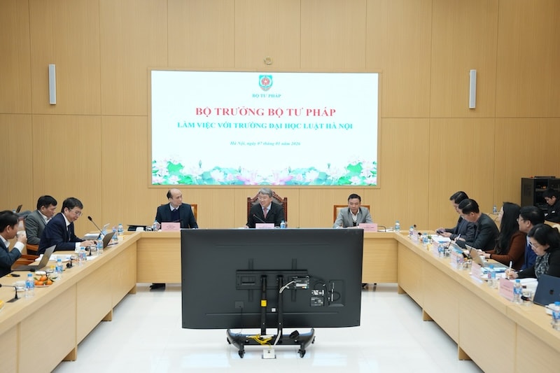 Ngày 7-1, Bộ trưởng Bộ Tư pháp Nguyễn Hải Ninh đã chủ trì buổi làm việc với Trường Đại học Luật Hà Nội về Đề án "Xây dựng Bộ chỉ số đánh giá mức độ hoàn thiện thể chế pháp luật kinh doanh cấp tỉnh" (PBLI).