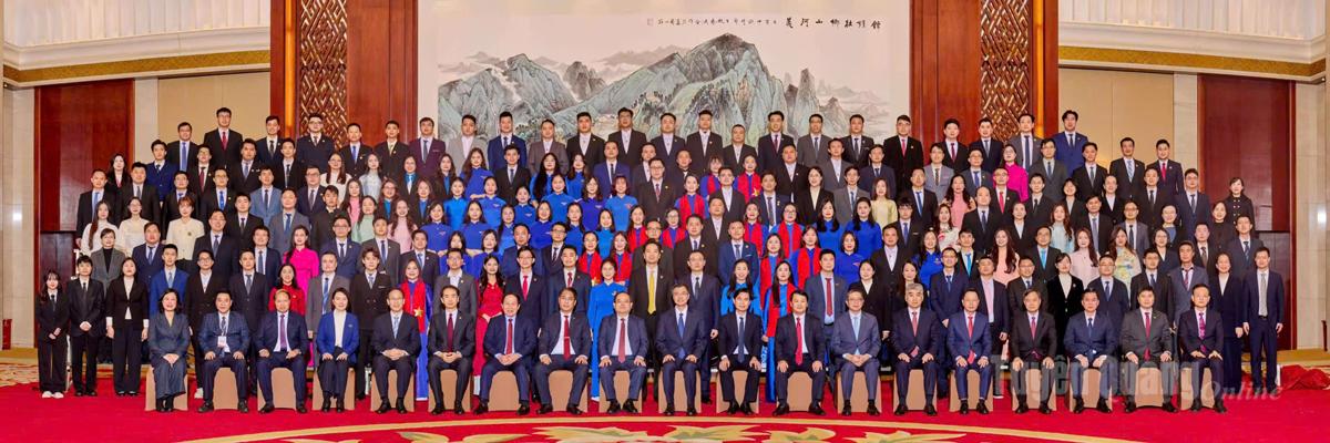 | Các đồng chí lãnh đạo Khu ủy Quảng Tây (Trung Quốc) và đại biểu chụp ảnh lưu niệm tại buổi gặp mặt thanh niên Quảng Tây và 5 tỉnh Tuyên Quang, Lạng Sơn, Cao Bằng, Quảng Ninh, Hải Phòng. |