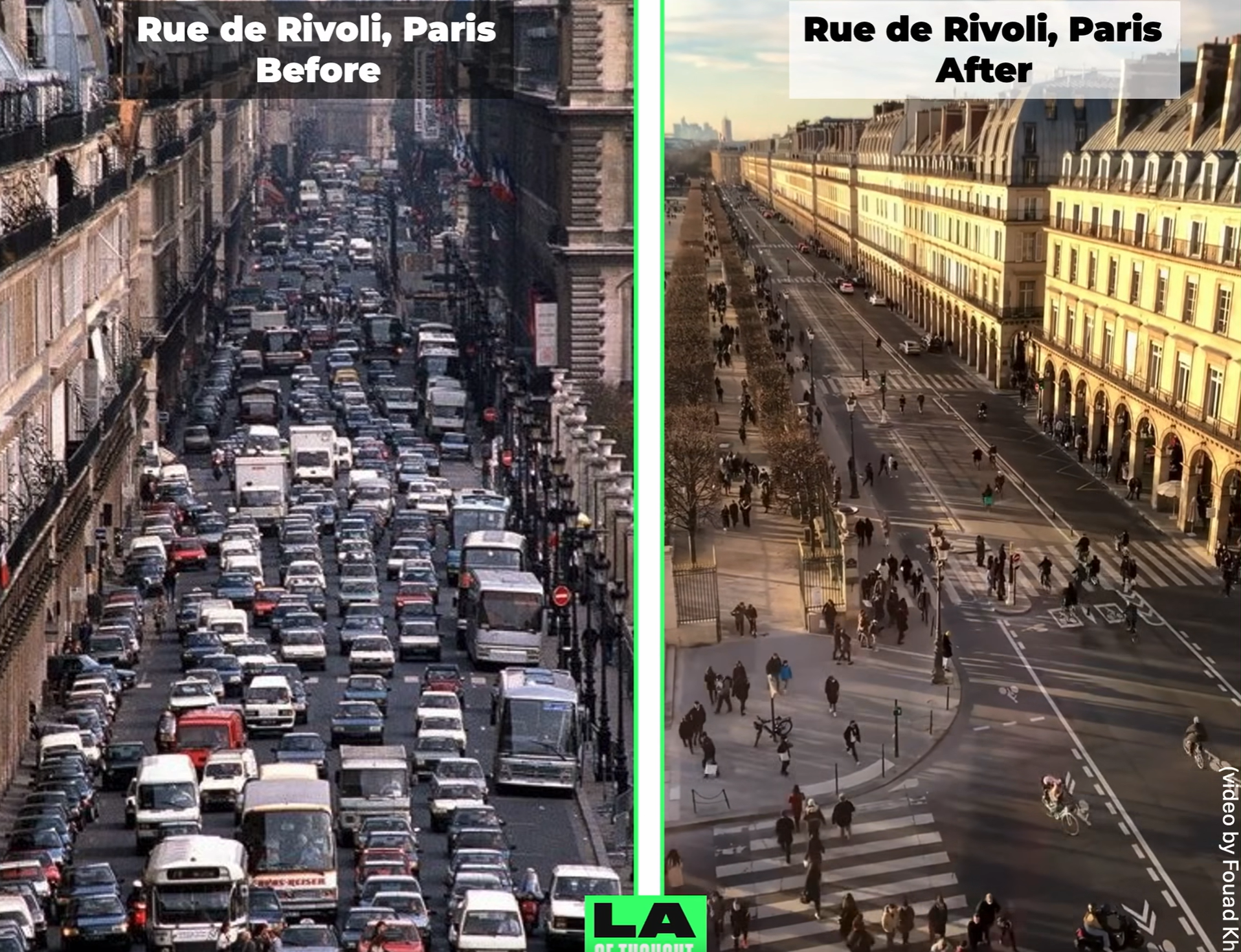 | Phố Rue de Rivoli trước và sau khi cải tạo. Nguồn: Fouad Khayat/Urban Cycling Institute |