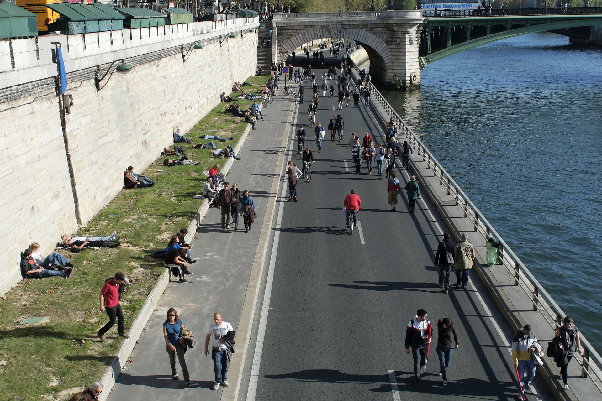 Các tuyến đường ven sông Seine, từng có hàng chục nghìn ôtô đi qua mỗi ngày, đã bị cấm xe và chuyển thành phố đi bộ. Ban đầu, quyết định này gặp nhiều phản đối vì lo ngại tắc đường và ô nhiễm sẽ chuyển sang khu vực khác. Nhưng theo thời gian, khu vực ven sông trở thành một trong những không gian công cộng đông người nhất thành phố và cũng là điểm thu hút du lịch.