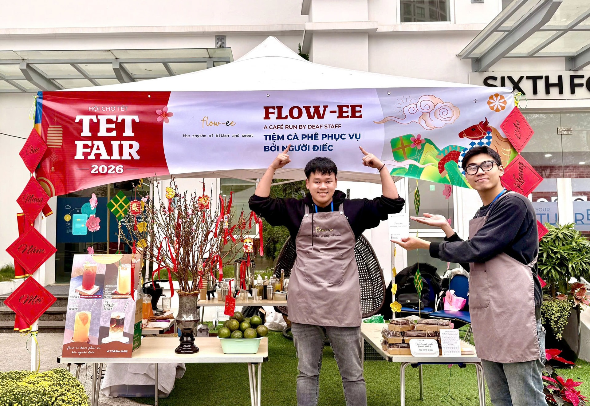 Cùng với Vụn Art, một mô hình khác tại phố Thể Giao cũng đang âm thầm lan tỏa những giá trị tích cực. Quán cà phê Flow-ee, nơi phần lớn nhân viên là người khiếm thính, mang đến không gian phục vụ đặc biệt với sự giao tiếp bằng ngôn ngữ ký hiệu, ánh mắt và nụ cười.