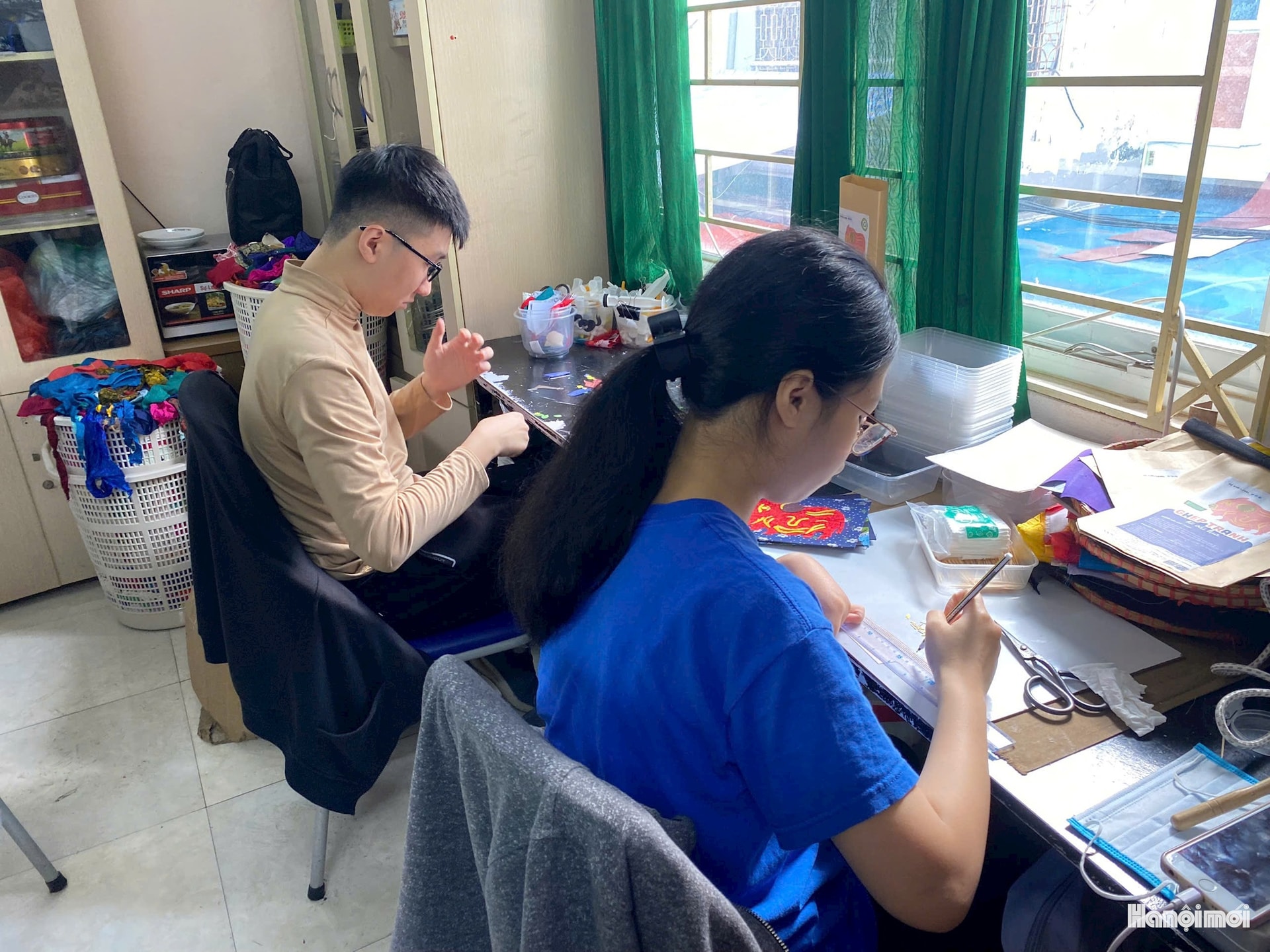 | Các nhân viên "đặc biệt "của Vụn Art đang miệt mài làm việc. Ảnh: MT |