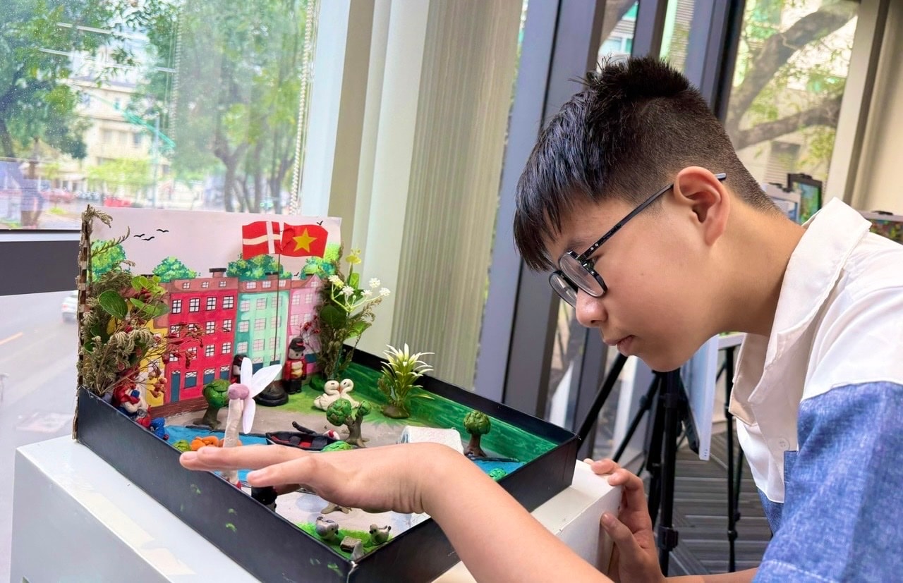 | Tác phẩm của em Trịnh Nam Phong, đoạt Giải Triển vọng, thể hiện một Đan Mạch hiền hòa qua những dấu ấn từ truyện cổ Andersen em đọc. Ảnh: Kiều Thoan Thu |
