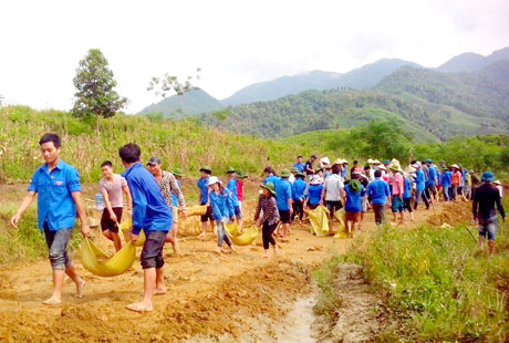Buổi lao động tình nguyện làm đường nội đồng tại thôn Yên Thượng và thôn Yên Lập, xã Yên Thành.
