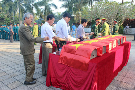 Tại buổi lễ, các đồng chí lãnh đạo ban, ngành, đoàn thể, lực lượng vũ trang đã dâng hương bày tỏ lòng thành kính tri ân, lòng tiếc hương vô hạn trước những hi sinh to lớn của các anh hùng liệt sỹ.