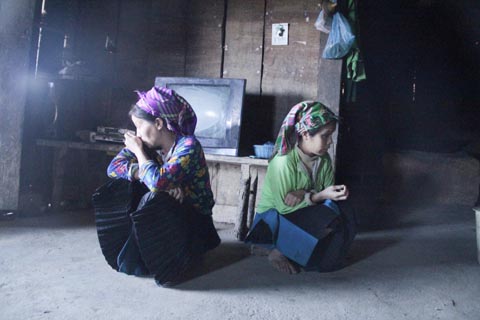 Người chị là Vàng Thị Say (38 tuổi), em gái là Vàng Thị Mua (36 tuổi), sinh ra trong gia đình người Mông nghèo, đều bị mù bẩm sinh nên cuộc sống của hai chị em gặp rất nhiều khó khăn. Khi chúng tôi tìm về Sán Chồ, chị Say đang lần mò giặt những chiếc quần, áo bên bể nước, chị Mua đang lọ mọ nấu cơm trong căn nhà thiếu ánh sáng. Mẹ của hai chị là bà Thào Thị Dế, năm nay đã ngoài 70 tuổi, đi lại khó nhọc, nhìn hai người con gái bị mù phải tự mình làm tất cả mọi công việc của cuộc sống mưu sinh hàng ngày như: Nấu cơm, giặt quần áo, lấy nước, lấy củi, trồng rau, nuôi lợn mà bà xót xa: “Ngày đẻ ra, con Say không có mắt, lại thêm con Mua cũng giống chị làm tôi buồn lắm, hàng xóm thì nghĩ tôi bị con ma rừng bắt tội, đòi bỏ đi, nhưng thương lắm, chúng nó cũng là con người, do mình đứt ruột đẻ ra, nên phải nuôi lớn chứ…”. Bà Dế có 4 người con, nhưng hai chị em gái kề nhau là Say và Mua là bị mù bẩm sinh. Ngày nhỏ, bà cũng đưa con đi chữa trị nhiều nơi, khi nghe cán bộ báo có đoàn khám mắt trung ương về là mẹ con bà lại dắt díu nhau xuống huyện, xuống tỉnh nhưng không chữa được. Tuổi thơ của Say và Mua là những tháng ngày triền miên trong bóng tối, không được đến trường, không có bạn bè và cả những đợt ngã sõng soài bên dốc núi, bị gãy tay, chầy xước mặt mày vì mò mẫm đi lấy củi về đun.