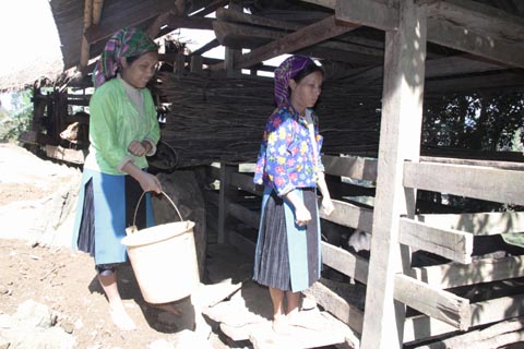Công việc hàng ngày của hai chị em Say và Mua là chăm sóc đàn lợn