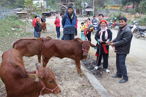 Trong ảnh: Một hộ đồng bào Dao (xã Thanh Thủy, huyện Vị Xuyên) trong ngày nhận bò hỗ trợ.